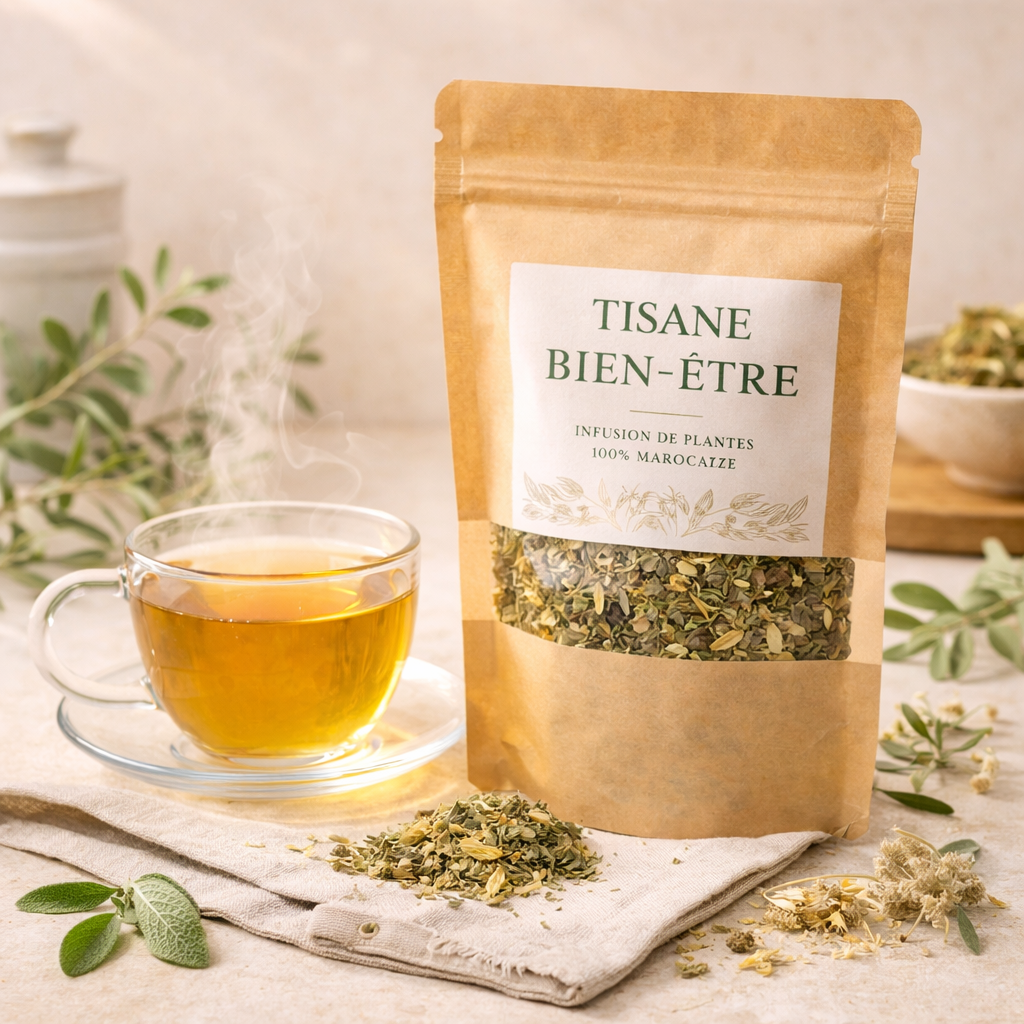 Découvrez notre Tisane Bien-être Naturelle, une infusion délicate élaborée à partir de plantes soigneusement sélectionnées pour offrir un moment de détente et de réconfort. Inspirée des traditions naturelles, elle s’intègre parfaitement dans une routine bien-être simple et authentique.